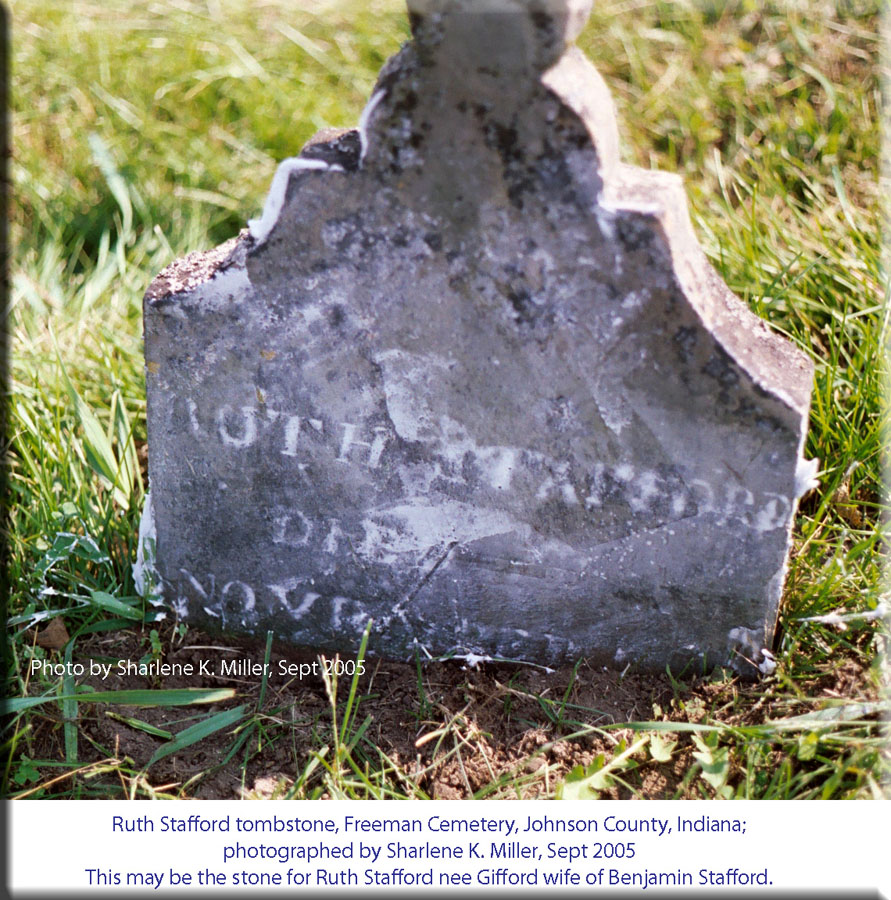 Stafford tombstone, Freeman Cemetery, Johnson County, Indiana;