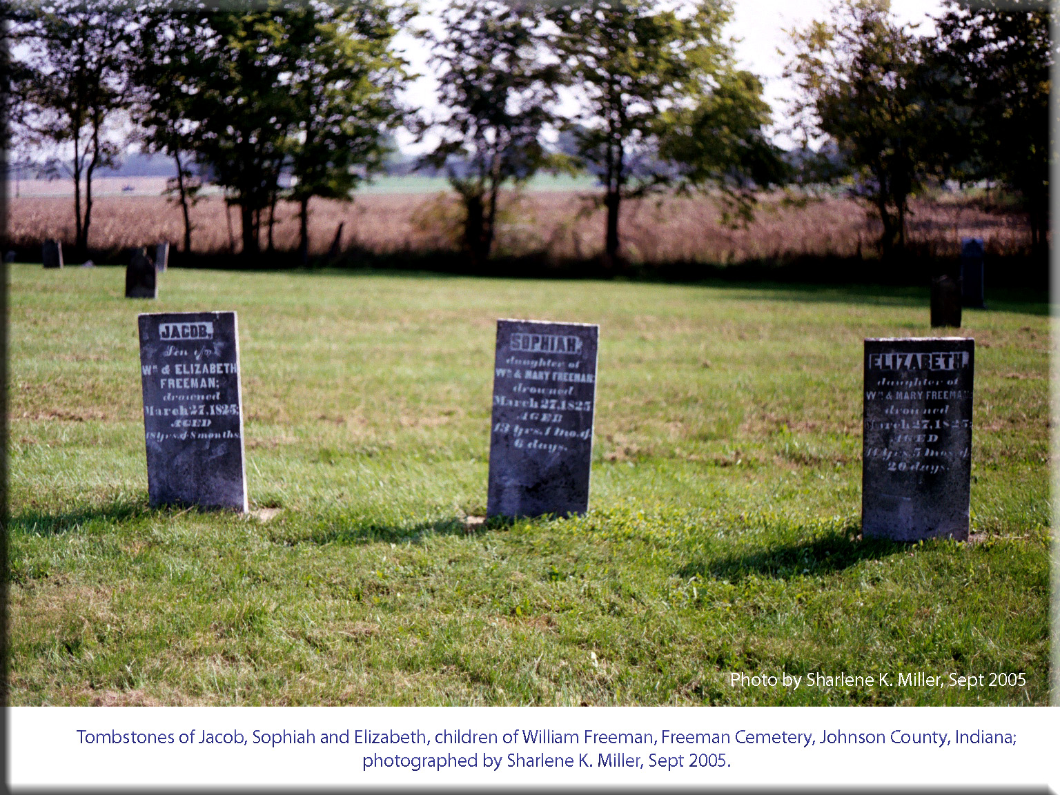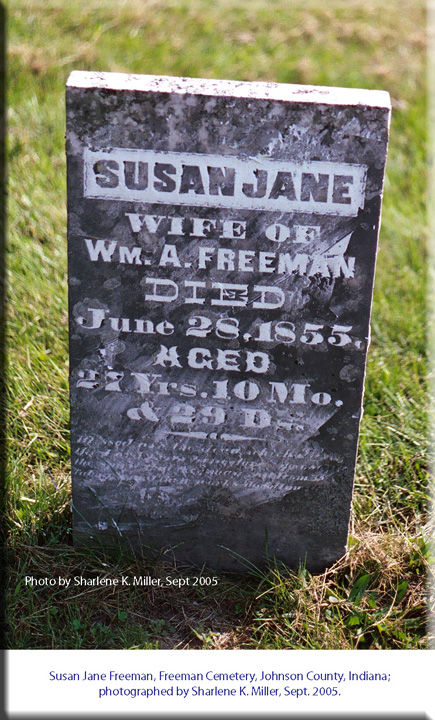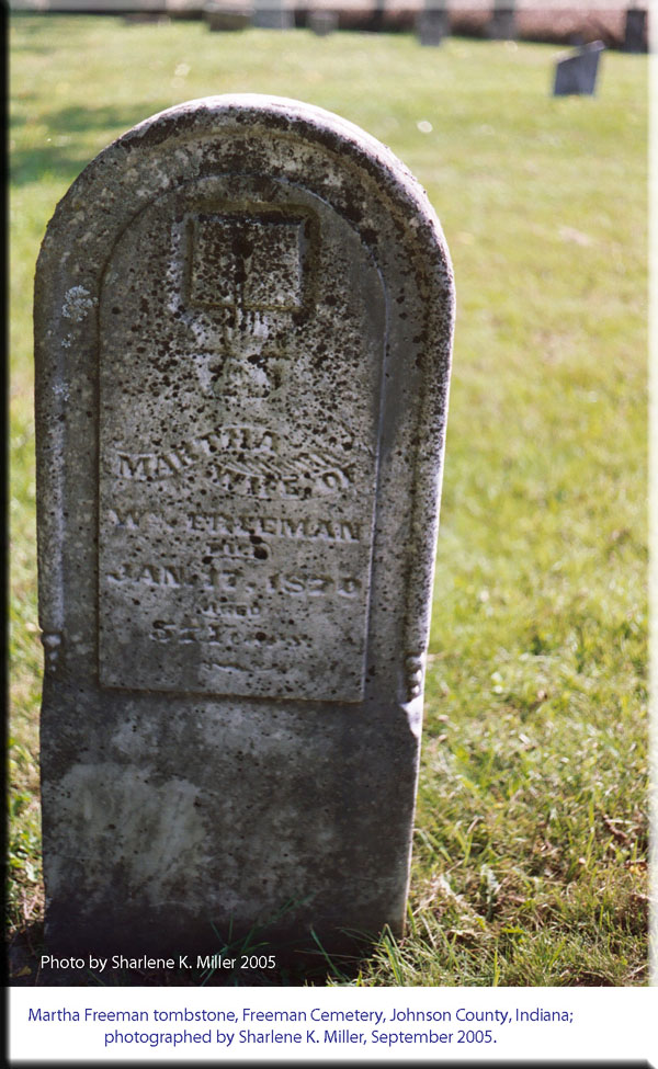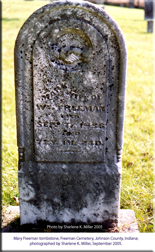 Tombstone, Freeman Cemetery, Johnson County, Indiana |