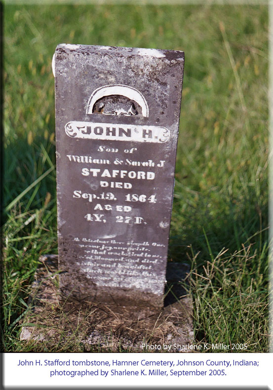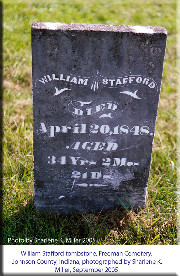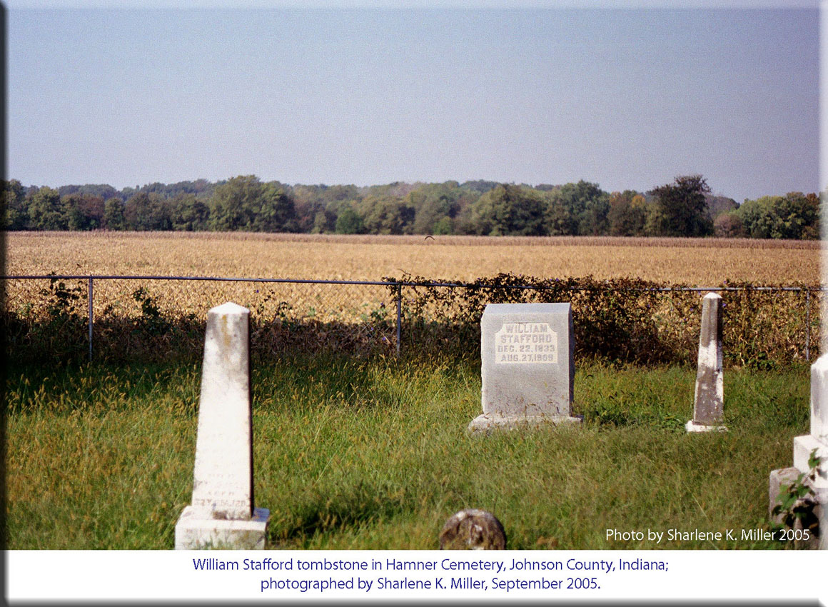 William Stafford tombstone, Hamner Cemetery, Johnson County, Indiana; photographed by Sharlene K. Miller, September 2005. |