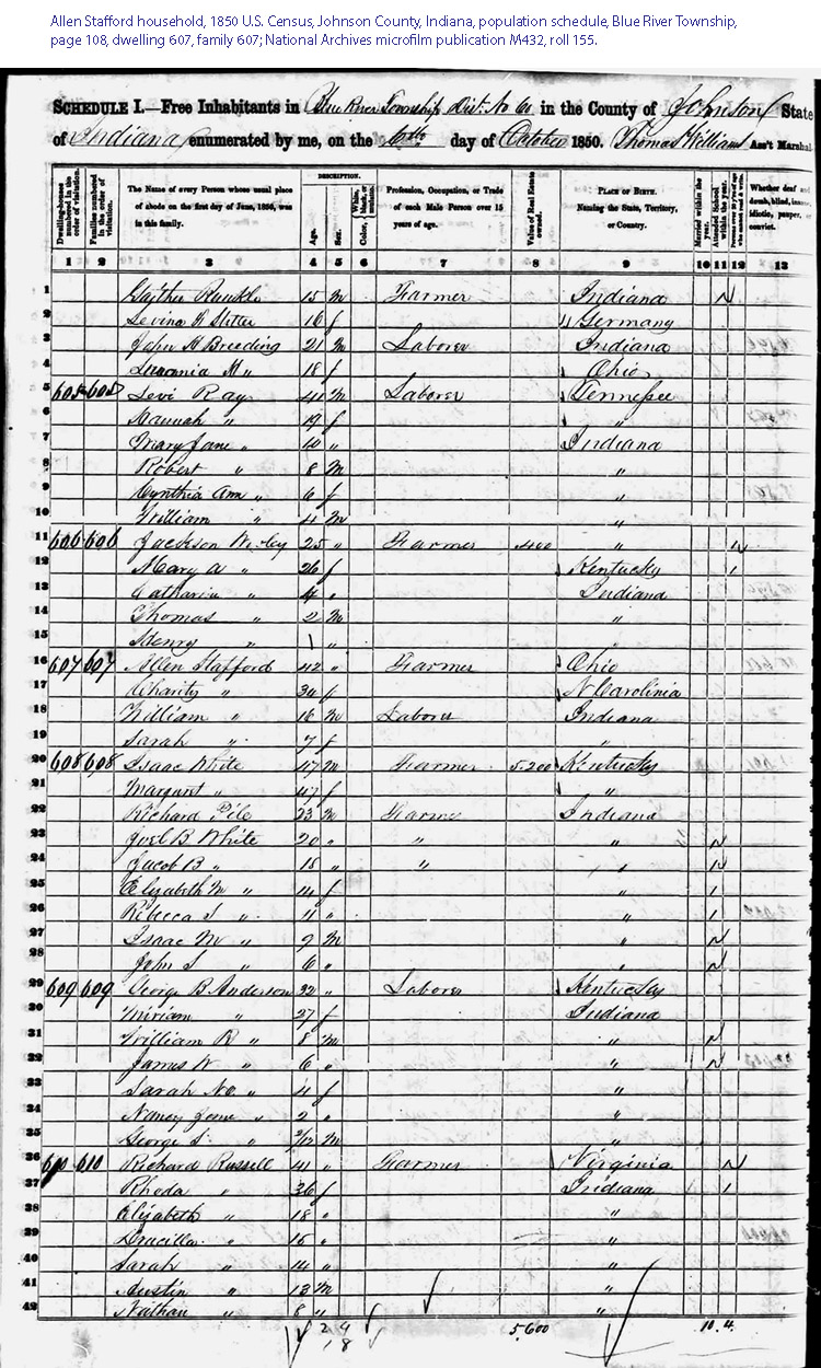Stafford household, 1850 U.S. Census, Johnson County, Indiana,
