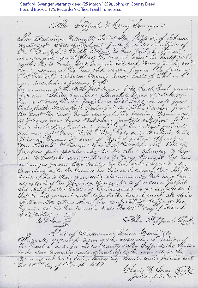 -Swanger warranty deed (25 March 1859), Johnson County Deed Record Book