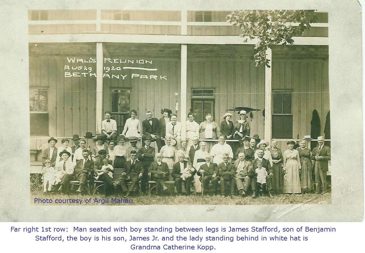 • Wall Family Reunion - - photo courtesy of Argil Mahan, a descendant of Benjamin Stafford. If any one can identify others in this photo, I would like to post the names.
