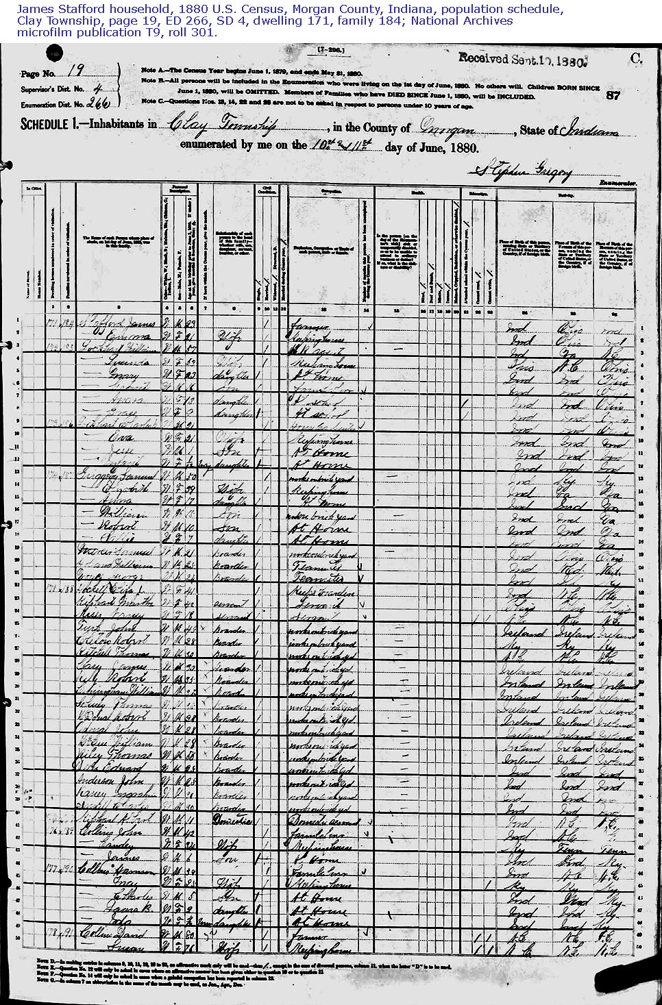 Stafford household, 1880 U.S. Census, Morgan County, Indiana,