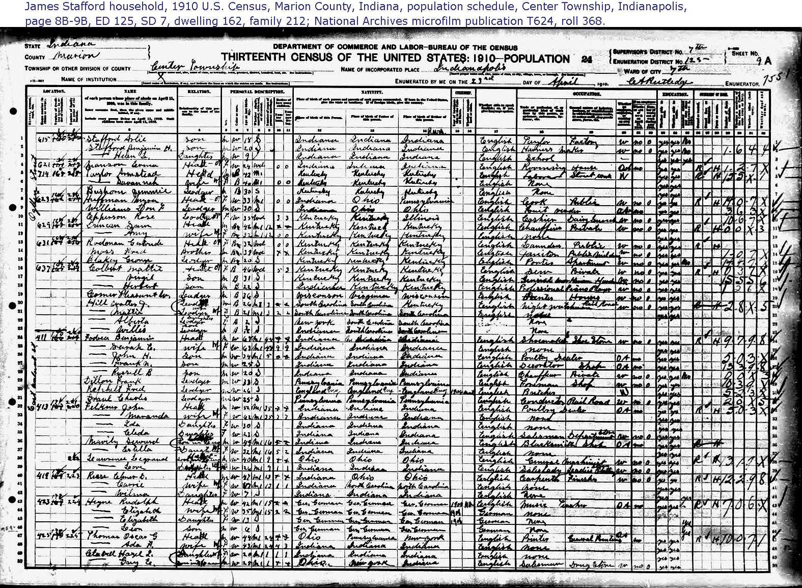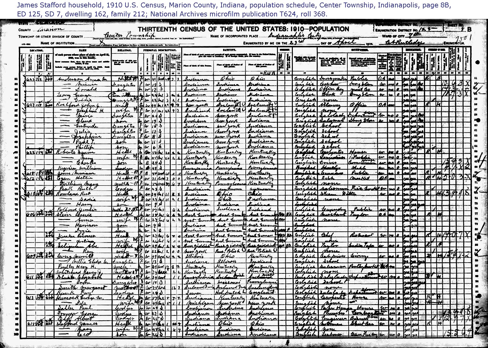 Stafford household, 1910 U.S. Census, Marion County, Indiana,