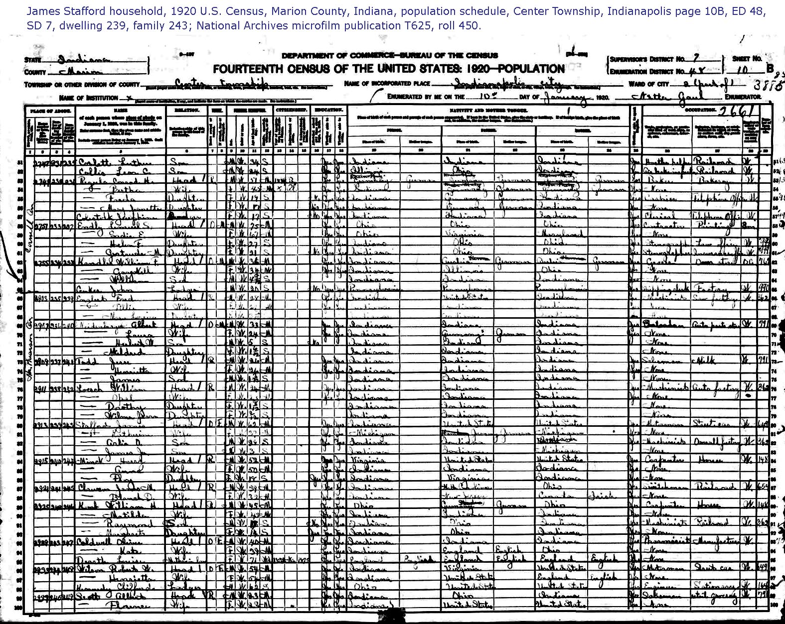 Stafford household, 1920 U.S. Census, Marion County, Indiana,