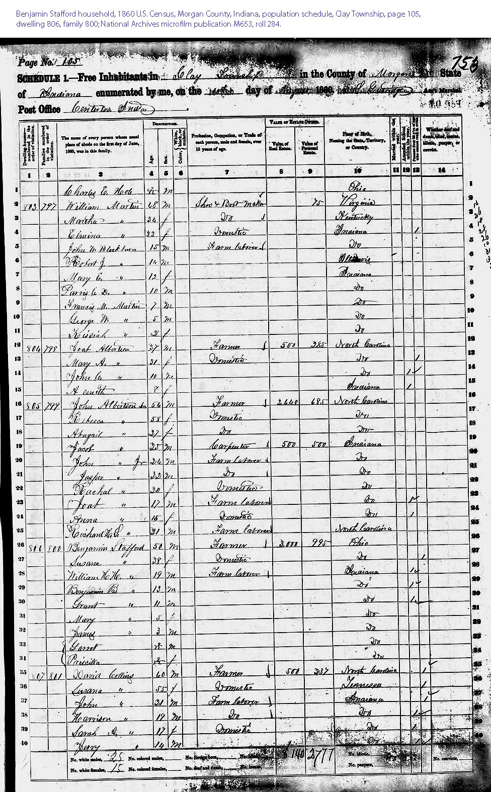 Stafford household, 1860 U.S. Census, Morgan County, Indiana, Clay