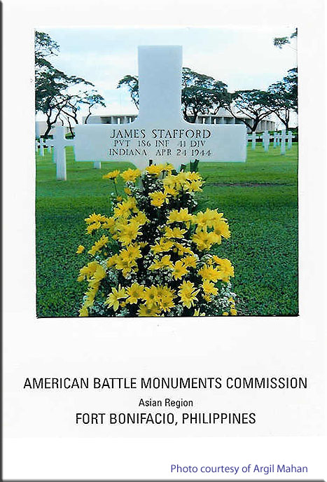 b. 1916; d. 24 April 1944 in World War II in Hollandia, Dutch New Guinea; buried at Fort Bonafacio, The Philippines; married Alberta Grass. [Army Photo courtesy of Argil Mahan.] |