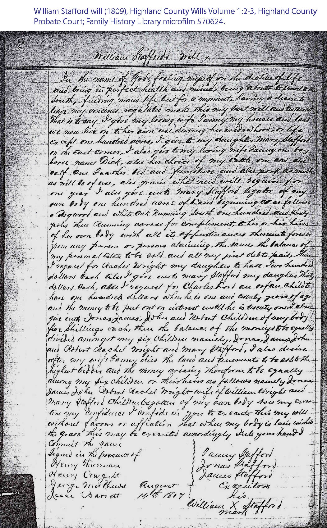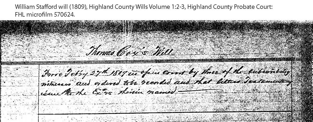 Stafford will (1809), Highland County Wills Volume 1:2-3, Highland